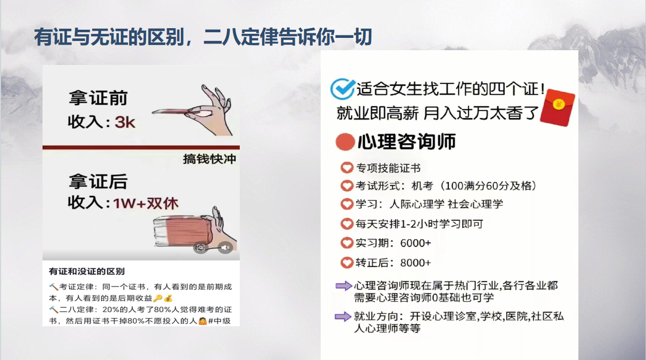 就业优先:企业招聘明确要求“持XX证优先”,薪资待遇更高;