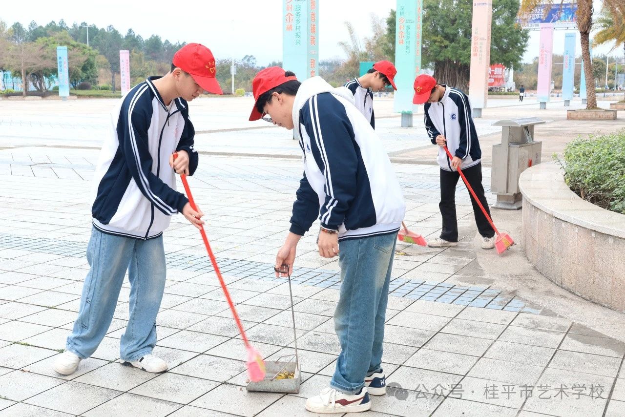 志愿者的担当——师生志愿者走进桂平站广场,弯腰拾起垃圾、俯身整理车辆,用双手守护城市文明,以实际行动诠释新时代雷锋精神。