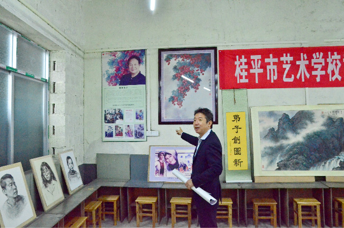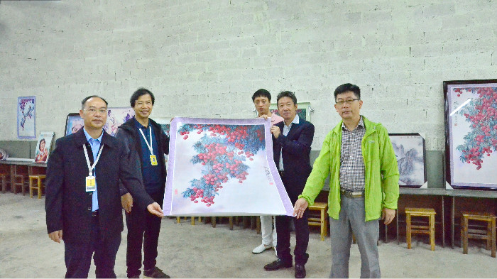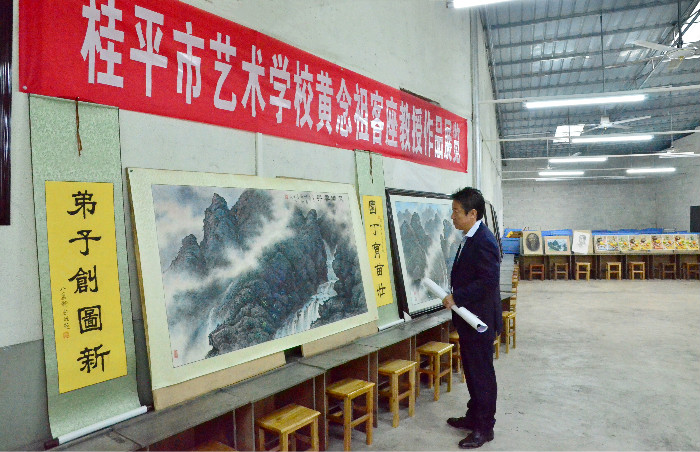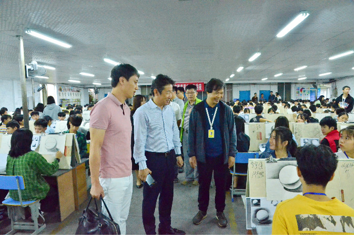 坂原圭一先生参观我校黄念祖教授的作品展览,对中国的绘画及书法文化产生了浓厚的兴趣。