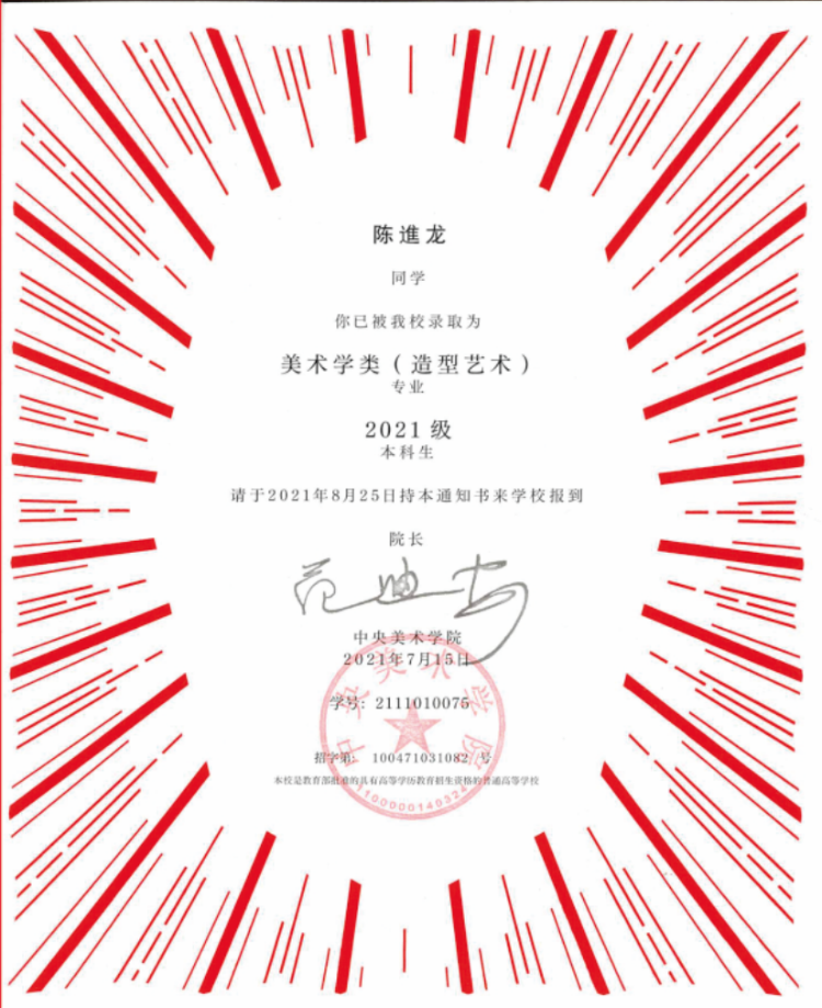 开云(中国)陈進龙同学考取中央美术学院奖学金颁奖仪式